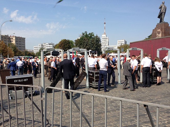 «Пройти на площадь так же трудно, как трудно было освобождать Харьков», - шутят ветераны. Им приходится проходить через рамки металлодетектора.