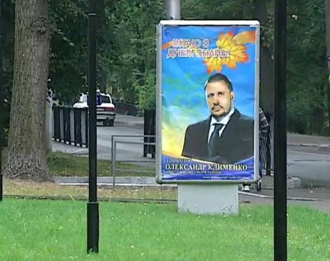В городе Ирпень, где расположена Налоговая академия Украины, появились сити-лайты, на которых министр доходов и сборов Украины Александр Клименко поздравляет студентов с Днем знаний. Фото рекламы разместила у себя на странице в социальной сети журналистка Ольга Василевская.