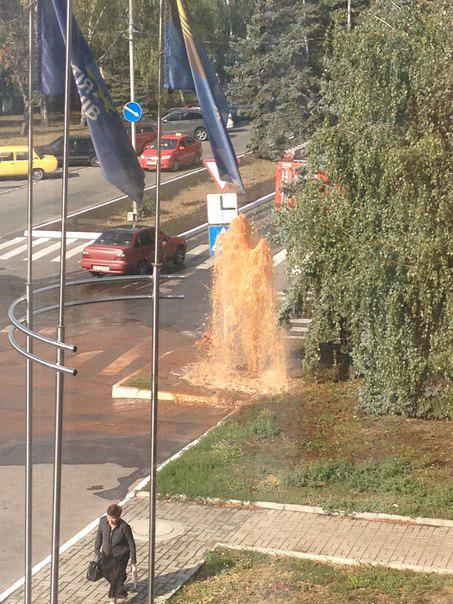На странице пользователя под именем Настасья Колдоба на сайте Вконтакте сегодня появилось фото, подписанное «Новый цветной фонтан в центре Макеевки», сообщает Цензор.НЕТ со ссылкой на Новости Донбасса.