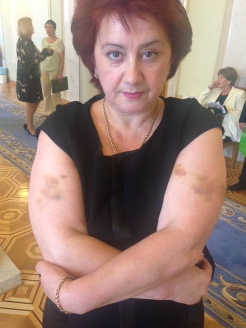 Народный депутат показала синяки, оставшиеся после схватки с охранником Азарова