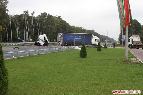 Утром 18 сентября в Житомирской области на 80 км трассы Киев-Чоп столкнулись четыре фуры. Об этом сообщает Житомир.info.