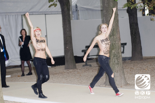 Две активистки Femen накануне вечером пытались сорвать показ коллекции Nina Ricci на Парижской неделе моды.