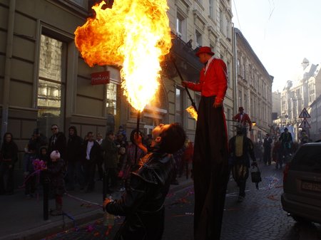 Во Львове 3-6 октября проходит международный театральный фестиваль «Золотой лев на улице – 2013».Участники фестиваля прошли торжественным шествием по проспекту Свободы, зажигая разноцветные дымовые огни.