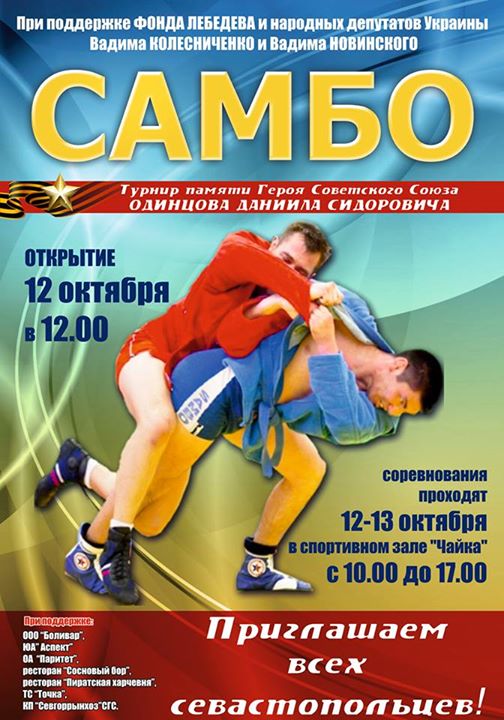 Народные депутаты Вадим Новинский и Вадим Колесниченко, представляющие в парламенте фракцию Партию регионов, выступили соорганизаторами турнира по самбо в Севастополе. Город обвешен афишами с рекламой события, на которое депутаты приглашают всех севастопольцев.