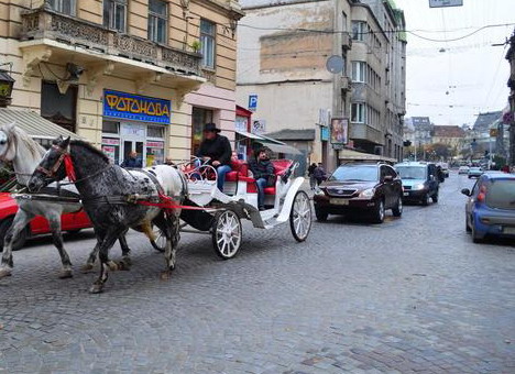 Во Львове карета, запряженная лошадьми, столкнулась с автомобилем Lexus с номерами Верховной Рады.
