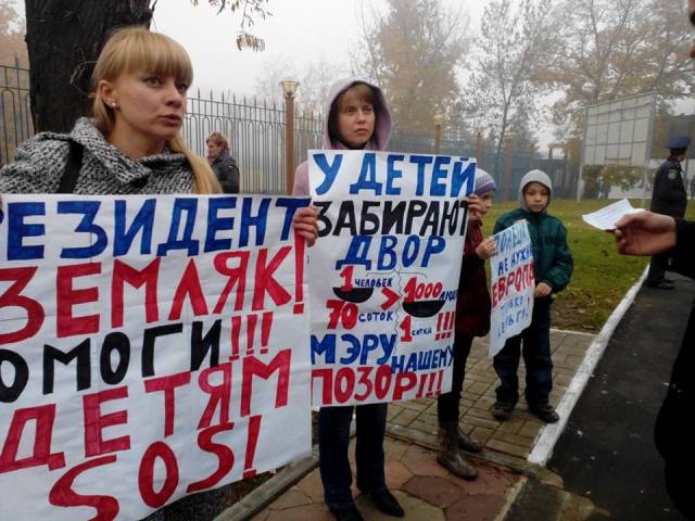 Как сообщает корреспондент «Донецк. Комментарии», в пикете приняли участие три женщины и дети. Они протестуют против застройки детской площадки во дворе их дома.