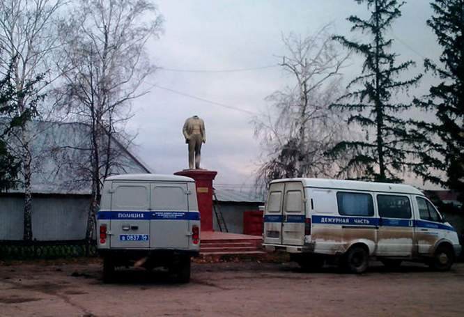 В райцентре Пономаревка Оренбургской области в ночь на 22 октября злоумышленники отпилили голову памятнику Владимиру Ленину. Впервые сообщение об акте вандализма и фотография с места происшествия появились на странице группы «Я рожден в Оренбурге» в соцсети «ВКонтакте».