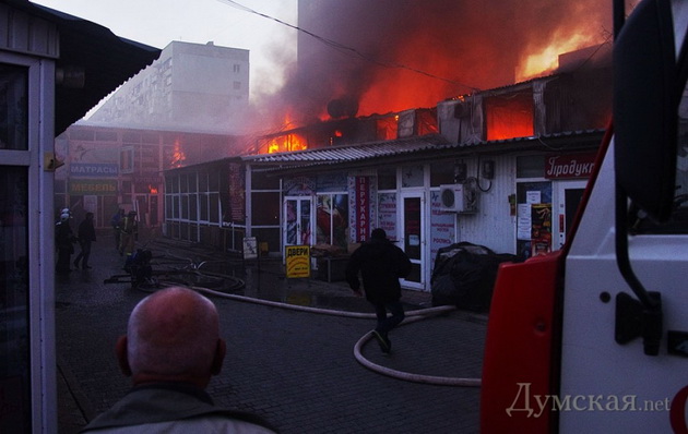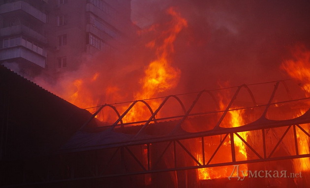 Работники рынка подтвердили ранее появившуюся в соцсетях информацию, что пожар начался в местном баре, расположенном на первом этаже административного здания. Через систему вентиляции огонь быстро распространился.