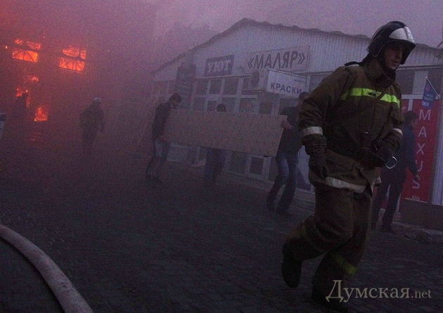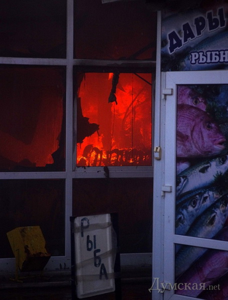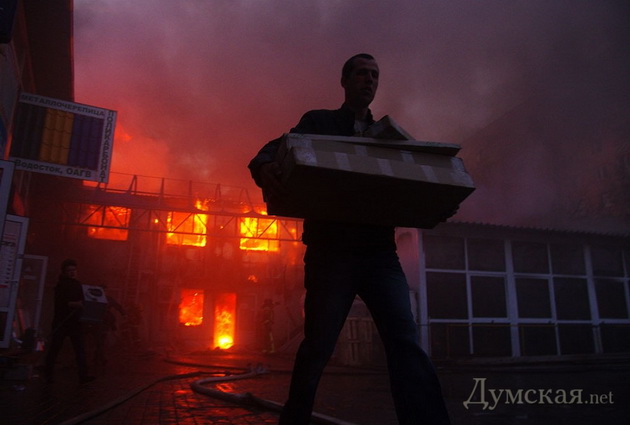 Пожар, охватил несколько торговых павильонов. Торговцы соседних павильонов в спешке выносили из магазинов все, что могли — мол, если не сгорит, все равно водой зальют. Надышавшись едкого дыма, люди чувствовали себя плохо и старались выбраться на свежий воздух.
