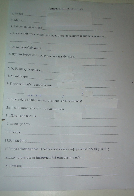 Регионалы будут контролировать избирателей через анкеты сторонников (ДОКУМЕНТ)