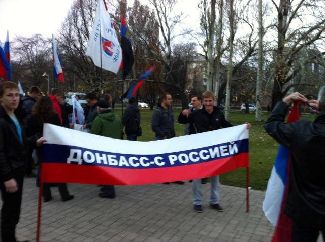 В Русском марше в Донецке приняли участие около 150 человек. Участники акции скандирровали: «Пока мы едины, мы непобедимы!», «Пришла пора вернуть эту землю себе!», «Слава Руси! Объединим в великий союз Великую, Белую и Донбасскую Русь!».