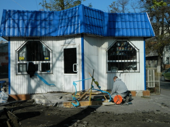 Для проверки сообщения по указанному адресу прибыла следственно-оперативная группа отдела милиции. При осмотре места происшествия было установлено, что торговый объект действительно огражден кусками ткани голубого и желтого цвета.