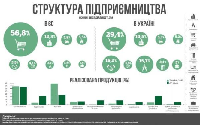 На чем делают бизнес в ЕС и Украине (ИНФОГРАФИКА)