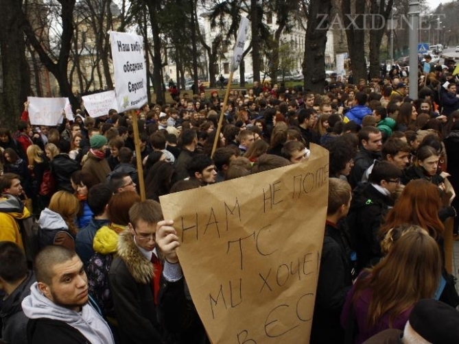 После этого поздним вечером 21 ноября на Майдане Незалежности в Киеве начался митинг в знак протеста против решения правительства остановить процесс подготовки к заключению Соглашения об ассоциации между Украиной и ЕС.