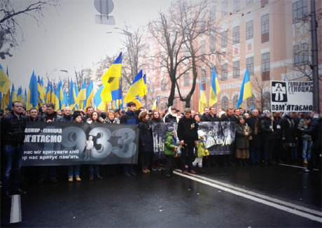Шествие прошло без всякой партийной символики, у участников были только плакаты «Голодомор – геноцид» и национальные флаги с черными лентами.