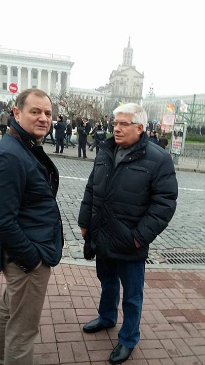 На фото пользователя Dmytro Fedechko запечатлены народные депутаты Геннадий Васильев (экс-генпрокурор) и Михаил Чечетов. Они вчера утром провели разведку на месте, где уже днем должна была собраться оппозиция.