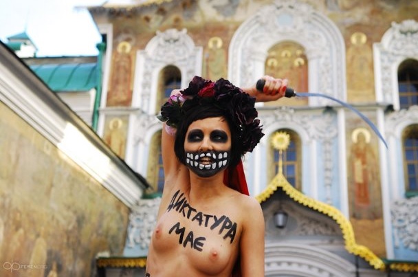 Активистка FEMEN голышом протестовала против диктатуры возле Лавры (ФОТО)