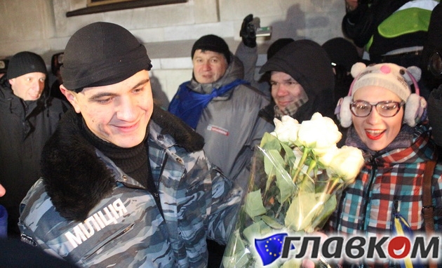 Митинг сближает: «Беркут» и революционеры меняются пирожками и цветами (ФОТО)