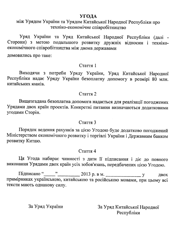 Янукович просил китайцев оказать правительству Азарова безоплатную помощь (ДОКУМЕНТ)