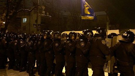 Около 3:40 правоохранители оттеснили митингующих к Крещатику вниз по Лютеранской.