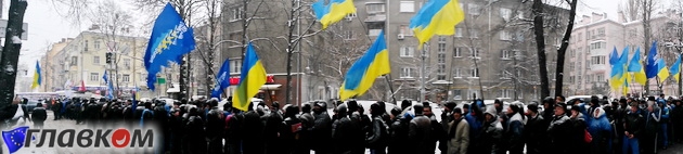 По центру Киева ходит колонна людей в поддержку Партии регионов.В частности, такая колонна была замечена на пересечении улиц Шелковичная и Институтская.В колонне сторонники власти держат флаги Партии регионов и национальные флаги Украины.