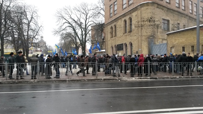 Возле станции метро «Арсенальная» в Киеве собираются тысячи сторонников Партии регионов для участия в митинге в поддержку действия президента Виктора Януковича и правительства.
