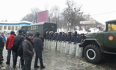 Кордон милиции на улице Грушевского переместился ближе к Европейской площади, где завтра должен начаться «антимайдан» Партии регионов.