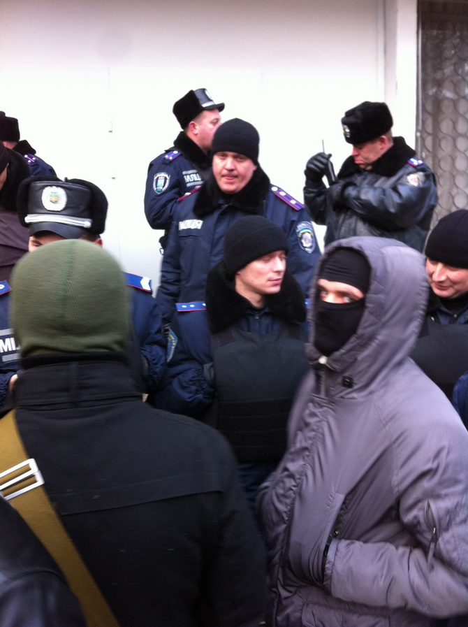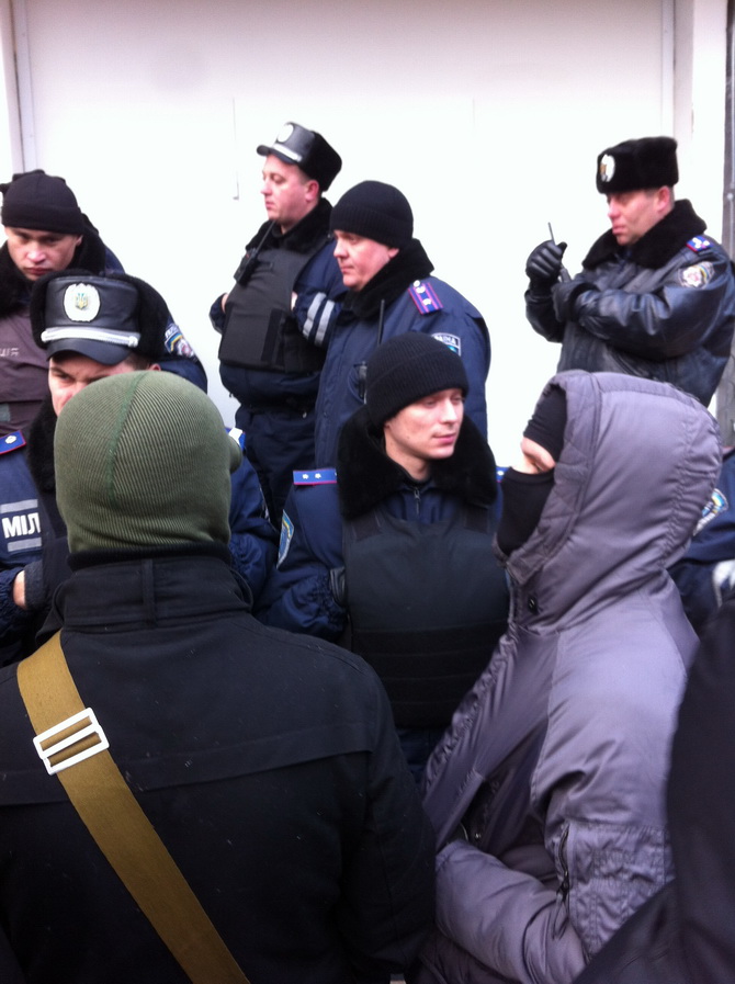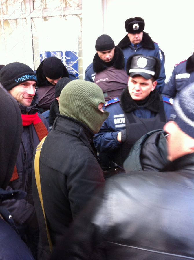В сообщении говорится о том, что под ОИК собираются молодые люди спортивного телосложения в масках, которые выполняют команды членов ВО «Свобода».