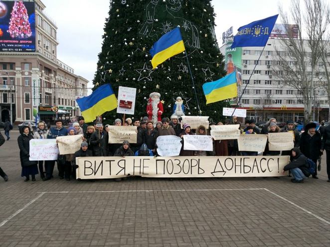 В субботу около 100 человек, жителей Донецка, прошлись по центральной улице Артема с транспарантом «Витя, не позорь Донбасс».