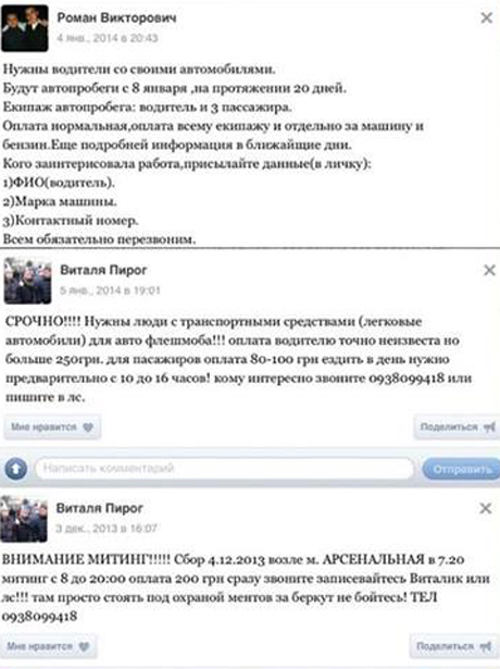 В соцсетях распространяются объявления о поиске активистов для участия в автопробеге в поддержку президента Виктора Януковича. Об этом сообщила журналист Наталья Седлецкая.