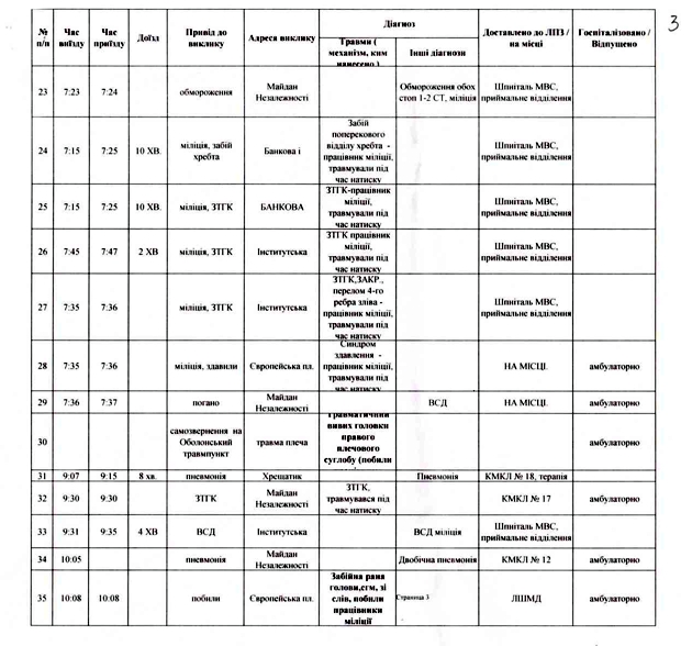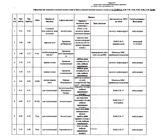 Переломы, сотрясения, рваные раны. Медики отчитались об итогах силовых разгонов Майдана (ДОКУМЕНТ)