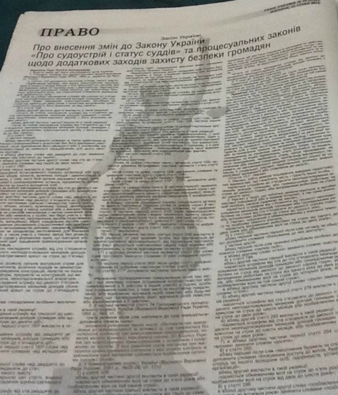 Газета «Голос Украины» опубликовала скандальные законы, принятые Верховной Радой Украины 16 января. Об этом в социальных сетях сообщают народные депутаты от ВО «Свобода».