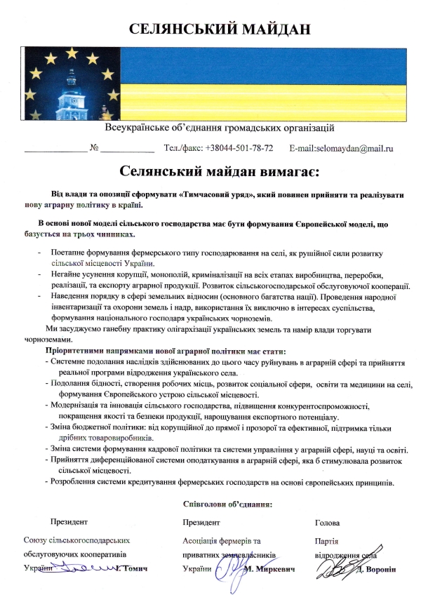 Селянський майдан висунув вимоги до влади (ДОКУМЕНТ) ®