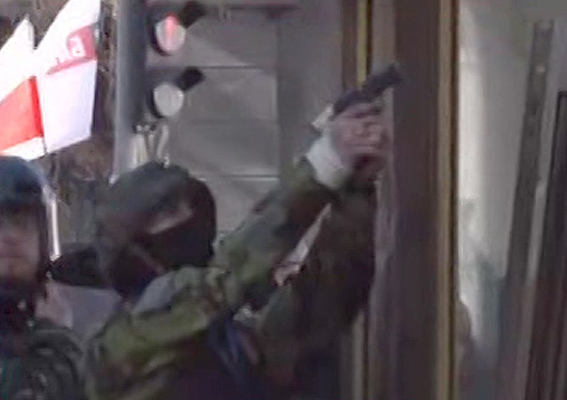 Во время прямой телетрансляции событий из центра Киева в эфире одного из телеканалов появились кадры, на которых виден факт применения одним из митингующих огнестрельного оружия. Об этом говорится в сообщении пресс-службы МВД.