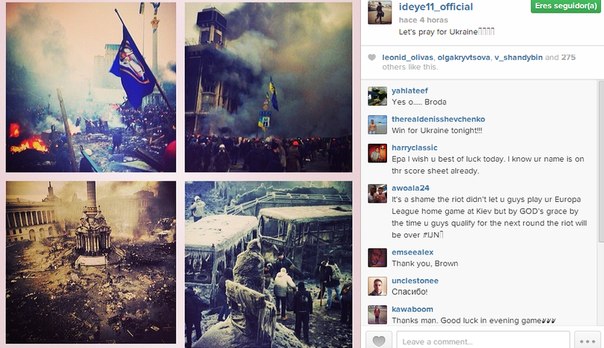 В свою очередь, форвард команды Браун Идейе выложил фото в социальную сеть Instagram с надписью: Let's pray for Ukraine