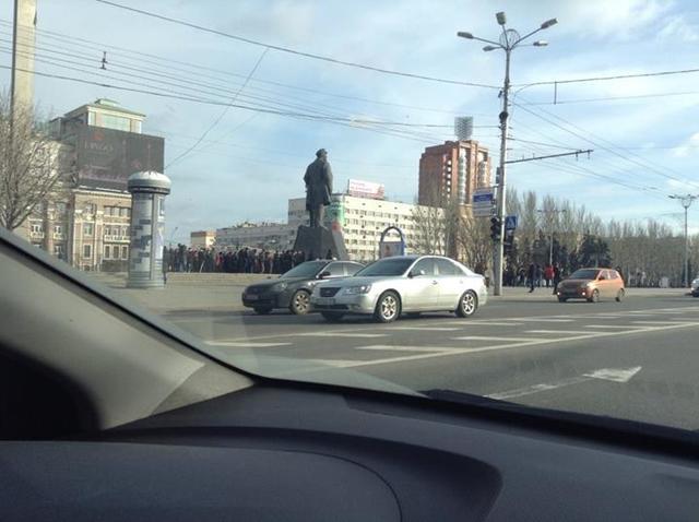 «100 человек пришли на площадь Ленина поддержать бывшего президента Януковича в Донецке», - написал он.