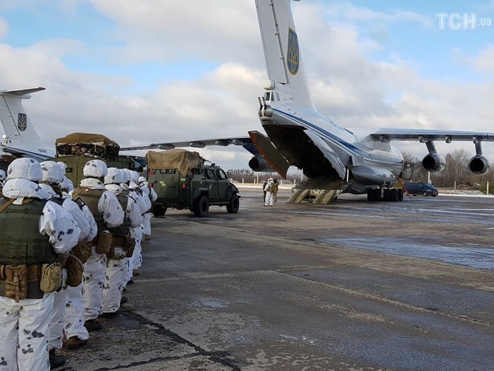 Як передає ТСН з місця подій, десантники летять на схід на чотирьох літаках Іл-76 у супроводі двох винищувачів Су-27.