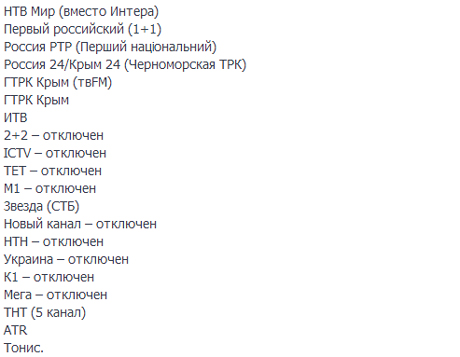 "Все остальные либо отключены, либо заменены на российские каналы. Крымские каналы также частично заменены", - отметил он.