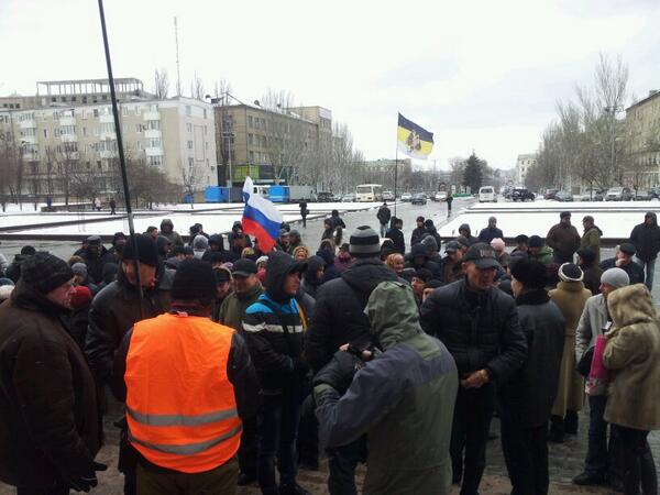 Под Донецким облсоветом 150 сепаратистов требуют объявить референдум (ФОТО)