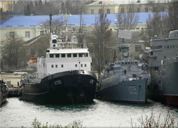 Сегодня утром корабли и суда ВМС Украины подняли Андреевский флаг России. В частности, речь идет про такие корабли, как судно управления «Донбасс», спасательный буксир «Кременец» и противопожарный катер «Борщив».