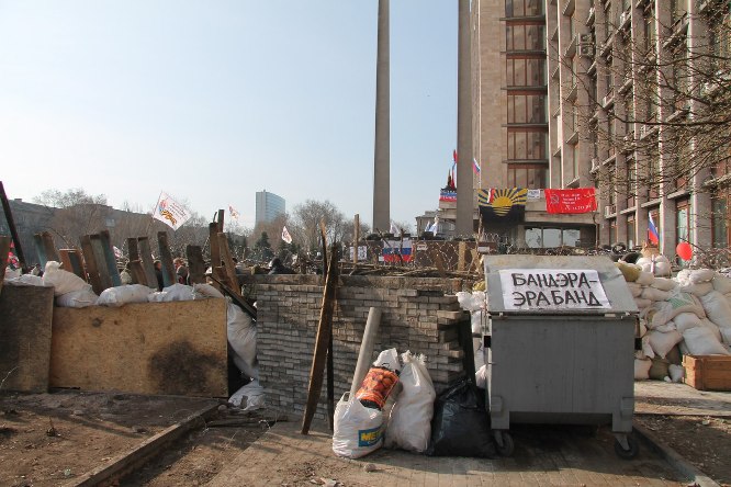 Здание Донецкой областной государственной администрации, захваченное сепаратистами 6 апреля, все еще не освобождено.