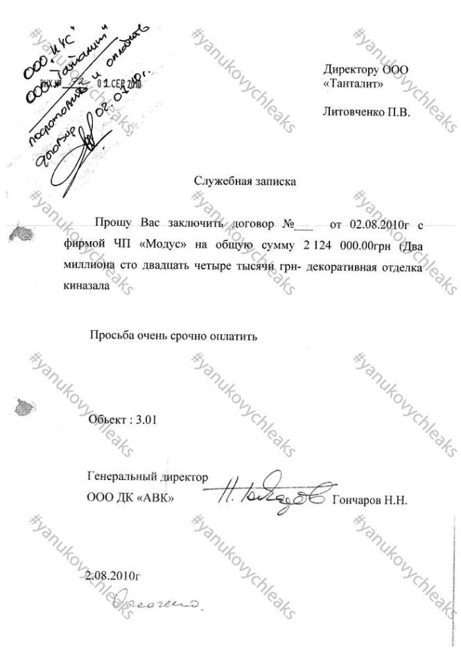 Декоративная отделка кинозала в «Межгорье» стоила 2,12 млн грн. Об этом свидетельствует документ, опубликованный на «YanukovychLeaks».