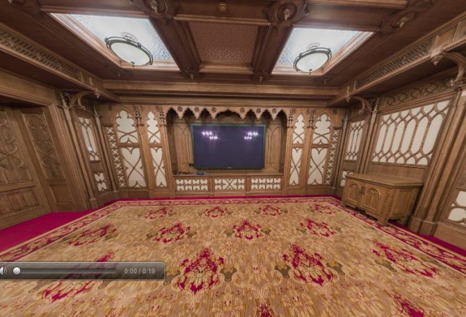 В кинозале есть девять кожаных кресел, из которых два массажные. Стены украшены деревом. Для демонстрации фильмов есть большой монитор, также есть экран, который опускается для просмотра фильмов из проектора. В зале есть 3D-очки, пишут Наші гроші.