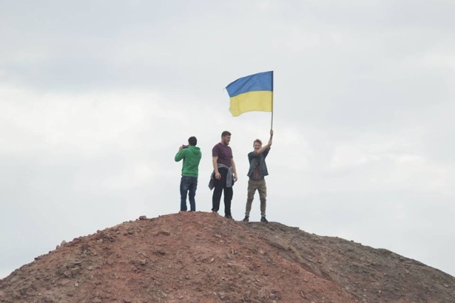 На самом высоком донецком терриконе студенты установили флаг Украины (ФОТО)