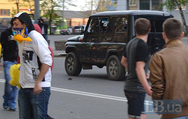 «Эта машина принадлежит лидеру организации «Оплот» Евгению Жилину, - рассказывает один из участников марша, свидетель нападения Сергей. - «Оплот» известен поставками «титушек» для Антимайдана в Киеве, эта машина раньше уже участвовала в нападениях на евромайдановцев в Харькове. Минимум двое наших парней сегодня получили огнестрельные ранения из машины Жилина».