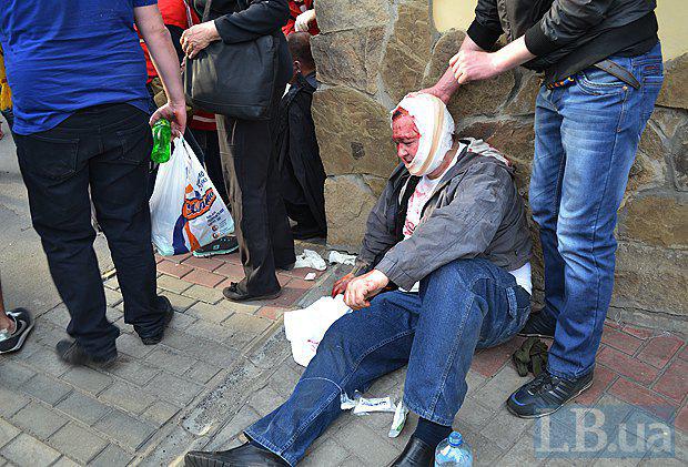 Как сообщало агентство, вечером 27 апреля в драке между ультрас «Металлиста» и пророссийскими активистами использовались биты, палки и камни. Среди пострадавших - два милиционера.