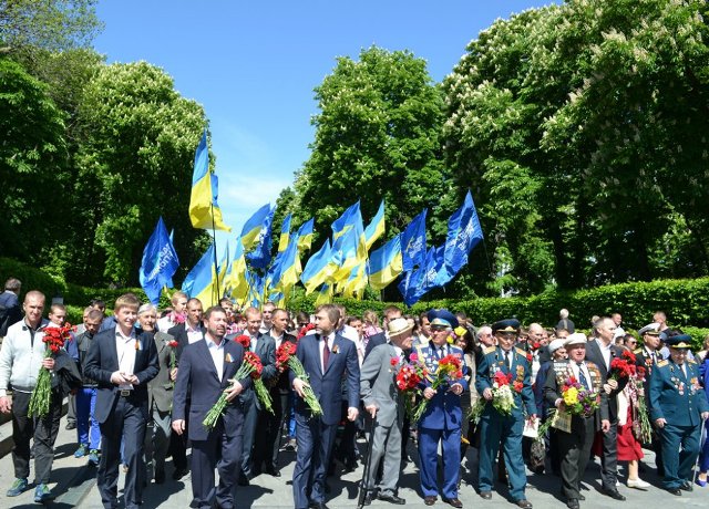 «Украинская лента - это символ победы, а украинской флаг - символ того, что Украина больше всего пострадала в Великой Отечественной войне. Всего украинского погибли и они, как никто, заслуживают отмечать этот день и считать его праздником Победы, праздником мира добра. Я благодарен всем, что сегодня наше мероприятие прошло мирно, с улыбками. Здесь собрались активисты партийных организаций, люди сами нас просили , чтобы обязательно была походка, она не такая большая как обычно , как каждый год. так как было анонсировано много провокаций мы наши мероприятия сократили к минимуму, но дань памяти к тем людям, которые погибли в войне мы были обязаны отдать», - рассказал лидер фракции Партии регионов в Киевсовете Владимир Филиппов, которого цитируют Українські Новини.