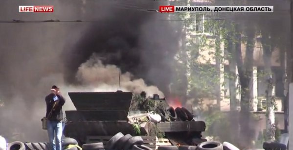 Центр Мариуполя: Опять выстрелы и взрывы, горит БМП (ПРЯМАЯ ТРАНСЛЯЦИЯ)
