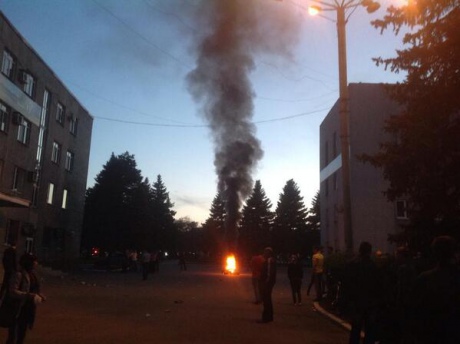 Горотдел милиции блокирован бронированными автомобилями Приватбанка, входы и выходы были заблокированы пулеметными точками.