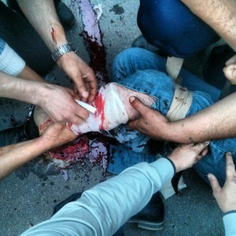 Вместе с тем журналист Илья Азар сообщает: ''Еще одного ранили в грудь. На четырех машинах уехали гвардейцы, устроив беспорядочную стрельбу против безоружных''.